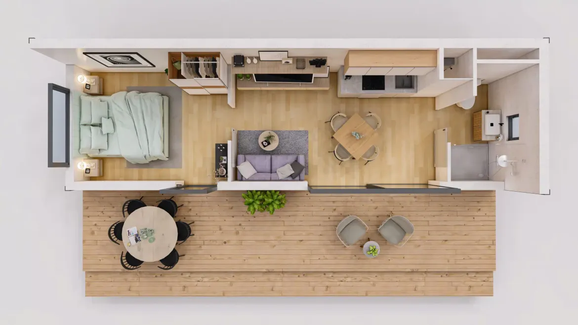 Le studio de jardin 40 m² signé FRENCHBOX est conçu comme un véritable logement indépendant. Il offre confort et modularité, idéal pour accueillir une famille, un gîte locatif ou un espace professionnel dans votre jardin.